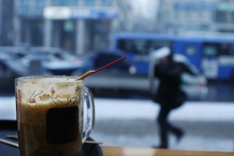 향긋한 커피향 가득한 커피집 창가에 앉아 막히듯한 도로와 조금씩 쌓이기 시작한 눈...